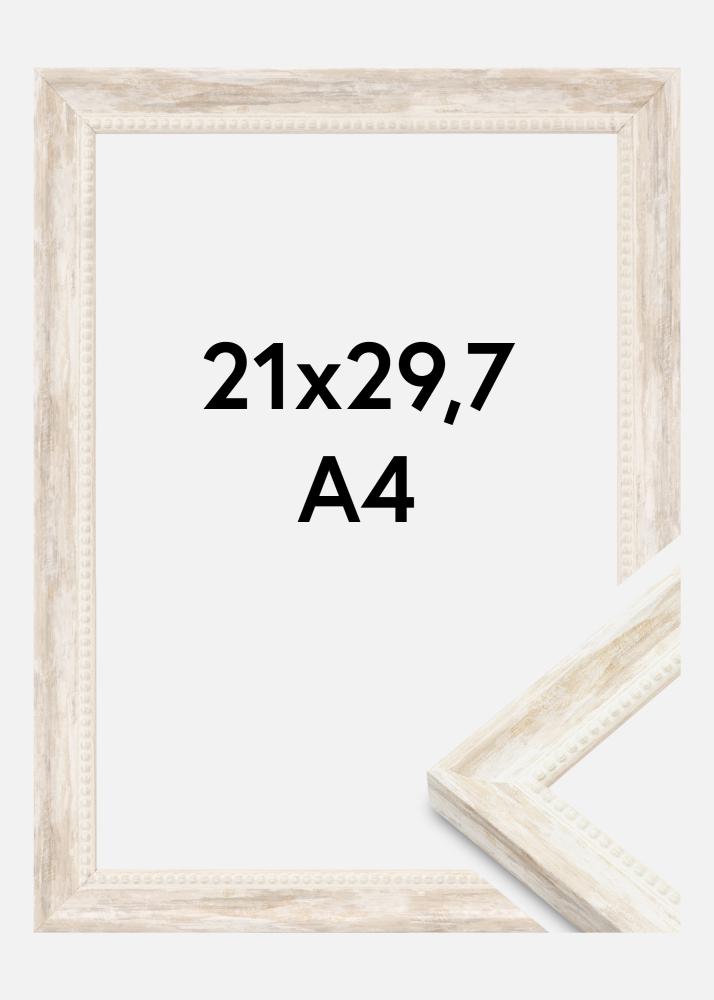 Αυτή η όμορφη κορνίζα φωτογραφιών σε μέγεθος 21x29,7 εκ. (A4) είναι ένας τέλειος συνδυασμός ρουστίκ γοητείας και κομψής φινέτσας. Με το λευκό της χρώμα και την διακοσμητική μπορντούρα από πέρλες κατά μήκος του εσωτερικού, προσφέρει μια διακριτική αίσθηση αντίκας που αναβαθμίζει οποιοδήποτε έργο τέχνης ή φωτογραφία. Αυτή η κορνίζα είναι κατασκευασμένη από ξύλο και διαθέτει πλαίσιο πλάτους 25 mm καθώς και βάθος 19 mm, προσφέροντάς της μια στιβαρή και συμπαγή αίσθηση.