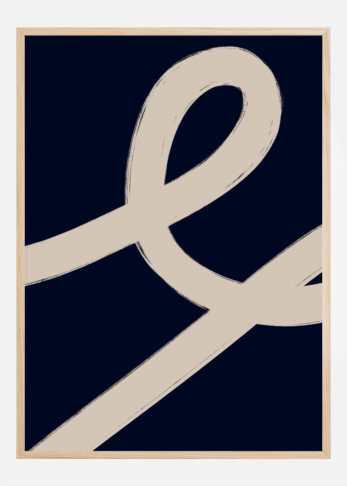 Αυτή η μινιμαλιστική και σύγχρονη αφίσα αιχμαλωτίζει την ουσία του σκανδιναβικού σχεδιασμού με τη καθαρή και απλή σύνθεσή της. Μια μεγάλη, μπεζ γραμμή σε σχήμα κύματος παίζει σε μια σκούρα μπλε φόντο, δημιουργώντας μια εικόνα που είναι και καταπραϋντική και οπτικά ενδιαφέρουσα. Η αντίθεση μεταξύ των δύο στοιχείων είναι σοφιστικέ και προσφέρει μια ισχυρή γραφική επίδραση που αναδεικνύει την ομορφιά της αφηρημένης τέχνης.