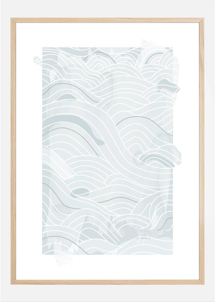 Μια αφίσα θάλασσας με μαλακές μπλε αφηρημένες γραμμές και κύματα σε ένα λευκό φόντο. Διάφοροι τόνοι του μπλε και διάφορα πάχη γραμμών συνδυάζονται για να δημιουργήσουν αυτά τα κυματιστά κύματα στην επιφάνεια. Αφήστε τις σκέψεις σας να περιπλανηθούν και αφήστε τον εαυτό σας να παρασυρθεί σε αυτό το μαλακό θαλασσινό μοτίβο.