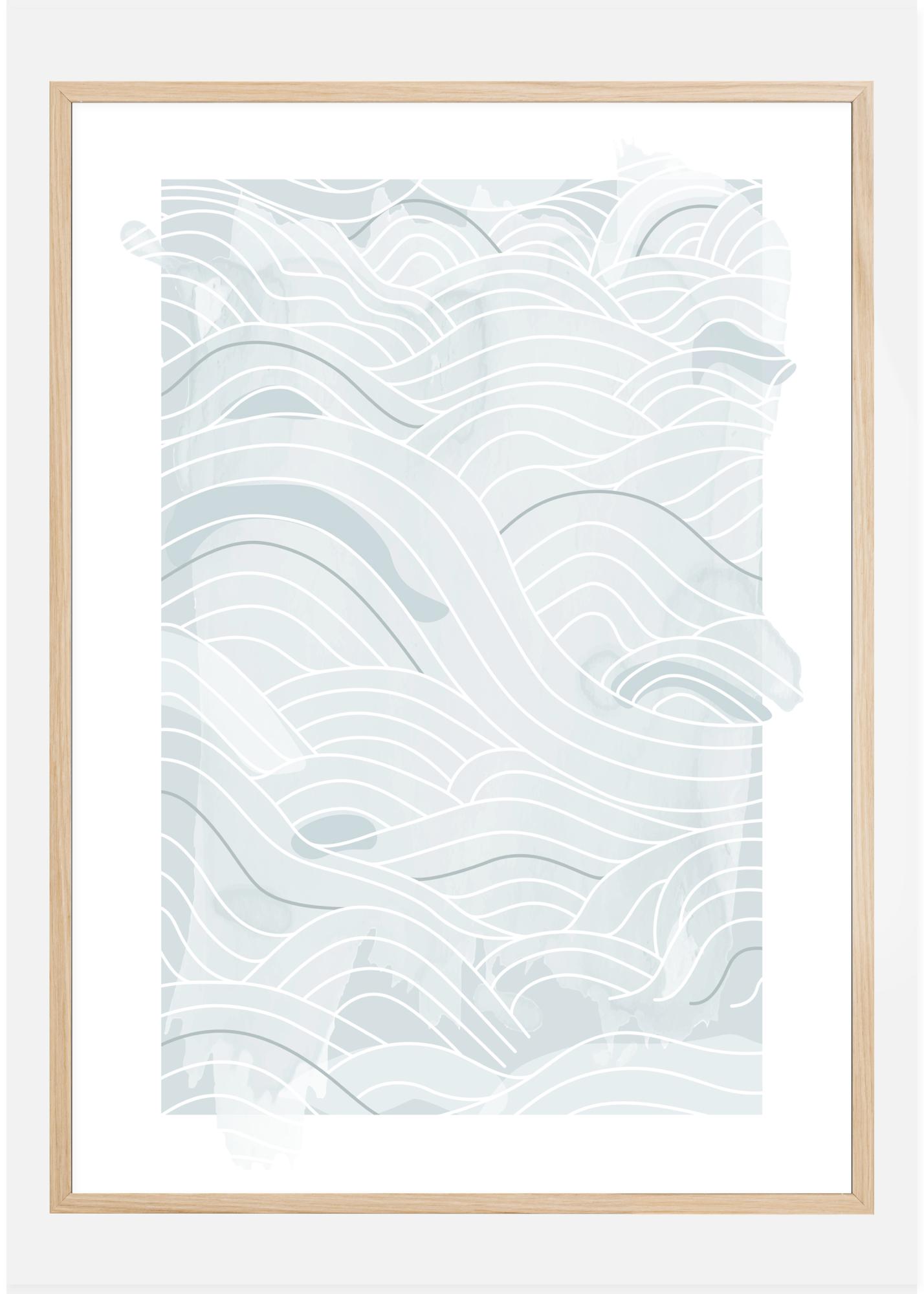 Μια αφίσα θάλασσας με απαλά μπλε αφηρημένες γραμμές και κύματα σε λευκό φόντο. Διάφορες αποχρώσεις του μπλε και διάφορα πάχη γραμμών συνδυάζονται για να δημιουργήσουν αυτά τα κυματιστά κύματα πάνω στη σελίδα. Αφήστε τις σκέψεις σας να περιπλανηθούν και αφήστε τον εαυτό σας να παρασυρθεί σε αυτό το απαλό θαλάσσιο μοτίβο.