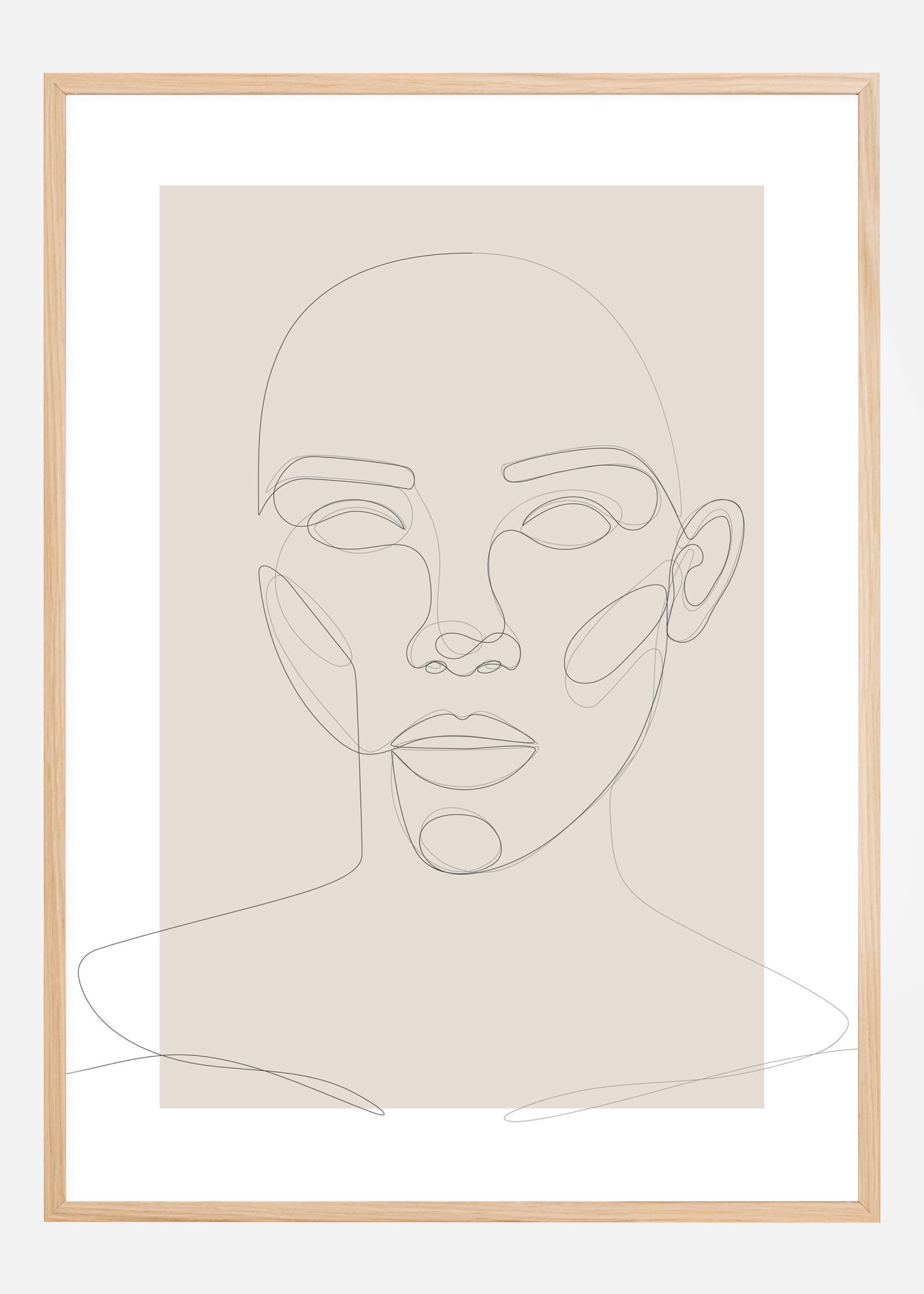 Μια απλή αφηρημένη αφίσα με ένα πρόσωπο που δημιουργήθηκε με λεπτές γραμμές. Το πρόσωπο κοιτάζει κατευθείαν έξω και έχει δημιουργηθεί με μια μακριά συνεχή γραμμή που τοποθετεί με συναρπαστικό τρόπο όλα τα κύρια χαρακτηριστικά του προσώπου. Αυτή η εικόνα έχει φτιαχτεί με γκρι φόντο και λειτουργεί καλύτερα σε έναν ουδέτερο τοίχο.