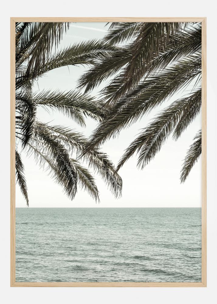 Αυτή η αφίσα φέρνει ένα κομμάτι της γαλήνιας αίσθησης της παραλίας απευθείας στο σπίτι σας. Τα φύλλα παλάμης πλαισιώνουν τη γαλήνια θέα της θάλασσας και του ουρανού από πάνω με έναν τρόπο που αιχμαλωτίζει τη μοναδική ομορφιά ενός παραθαλάσσιου τοπίου. Το χαλαρωτικό πράσινο χρώμα των φοινίκων αντιπαρατίθεται φυσικά με το μπλε της θάλασσας και το φως του ουρανού, προσφέροντας μια αίσθηση αρμονίας και αιωνιότητας.