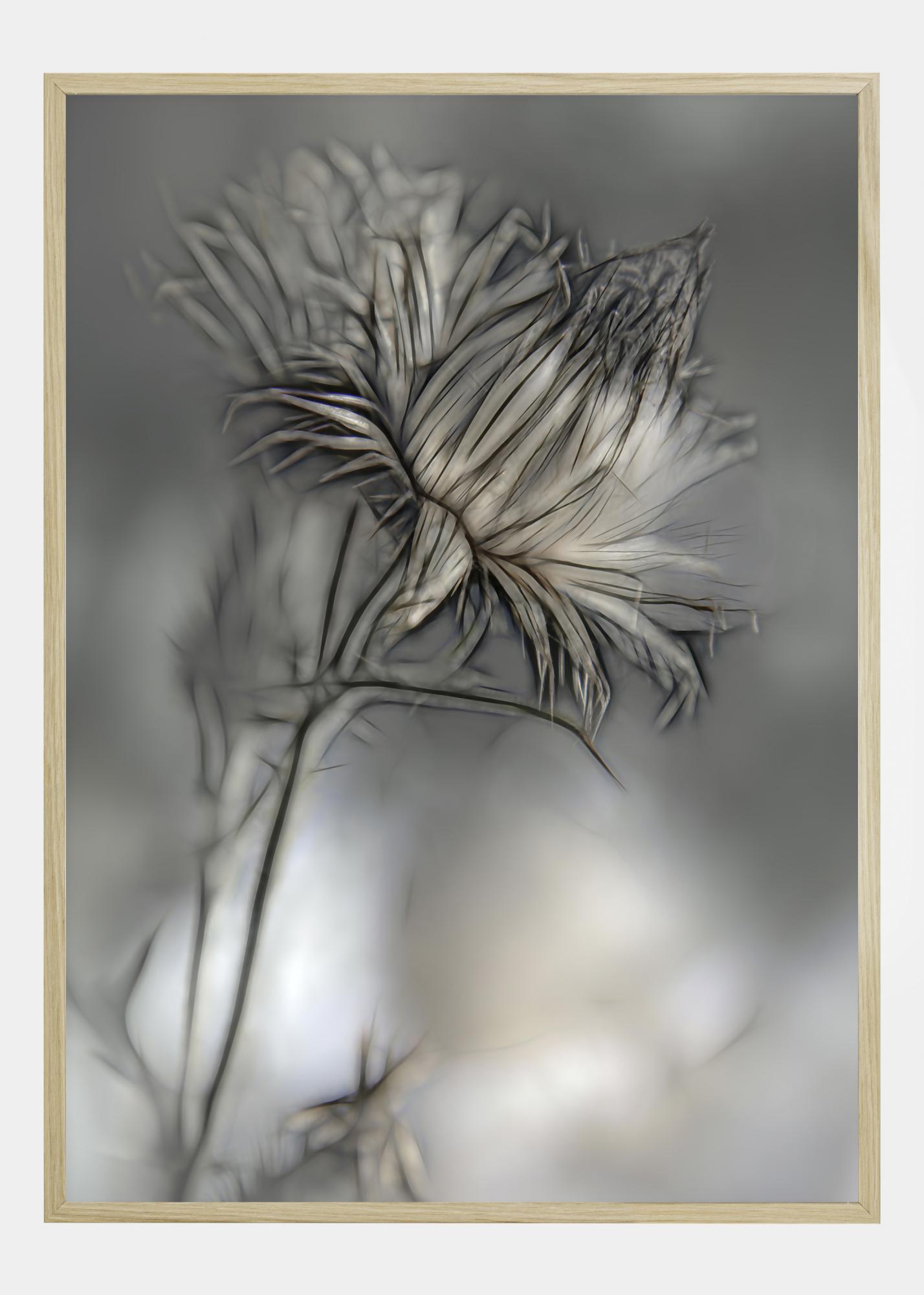 Μια αφίσα κοντινής λήψης με ένα άνθος. Απαλά μπλε, γκρι και ροζ χρώματα γεμίζουν την εικόνα καθώς το άνθος ξεχωρίζει καθαρά ενάντια στο απαλό, θολό φόντο. Μπορείτε σχεδόν να απλώσετε το χέρι και να διαλέξετε το άνθος από αυτήν την υπέροχη, απαλή εικόνα.