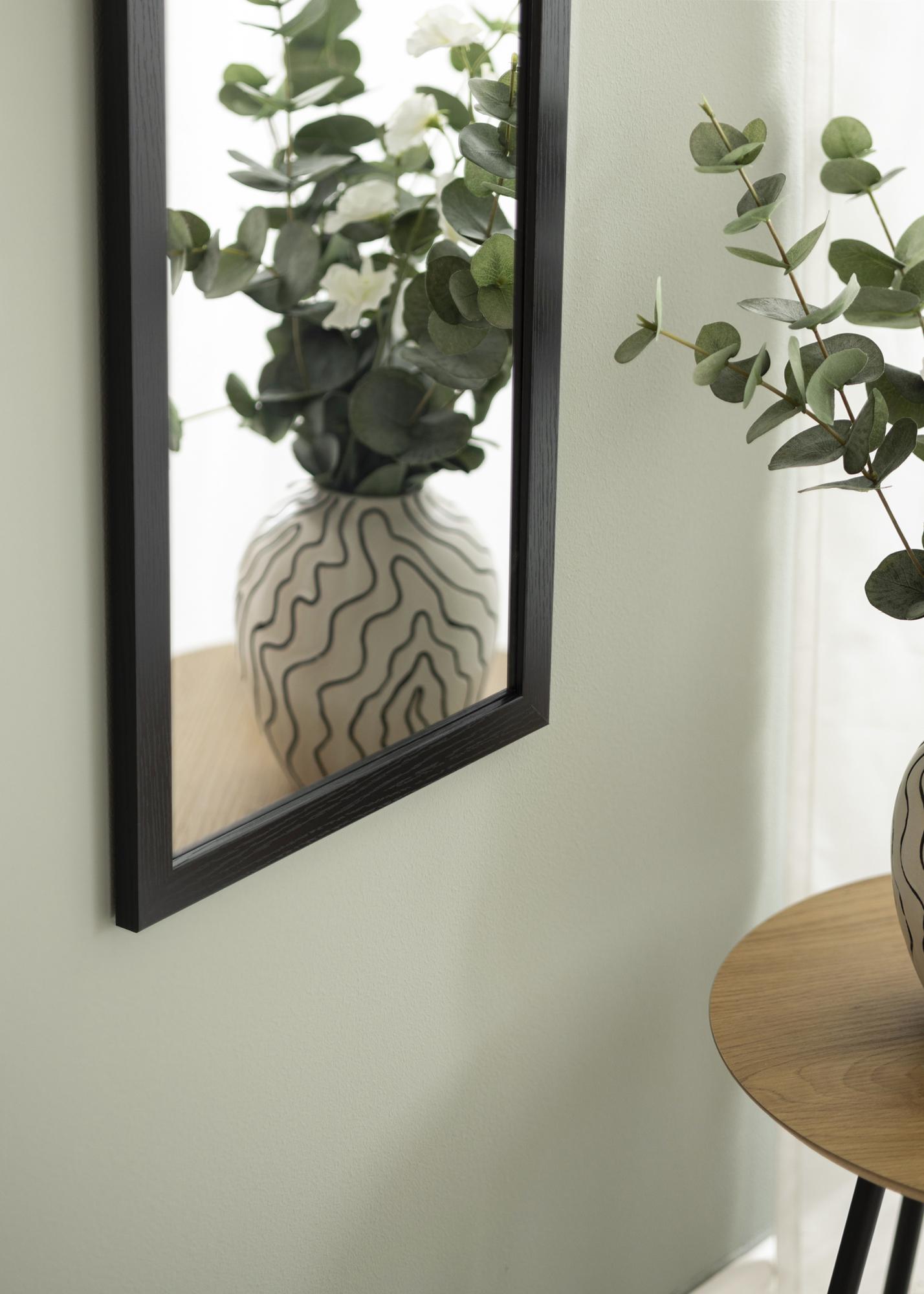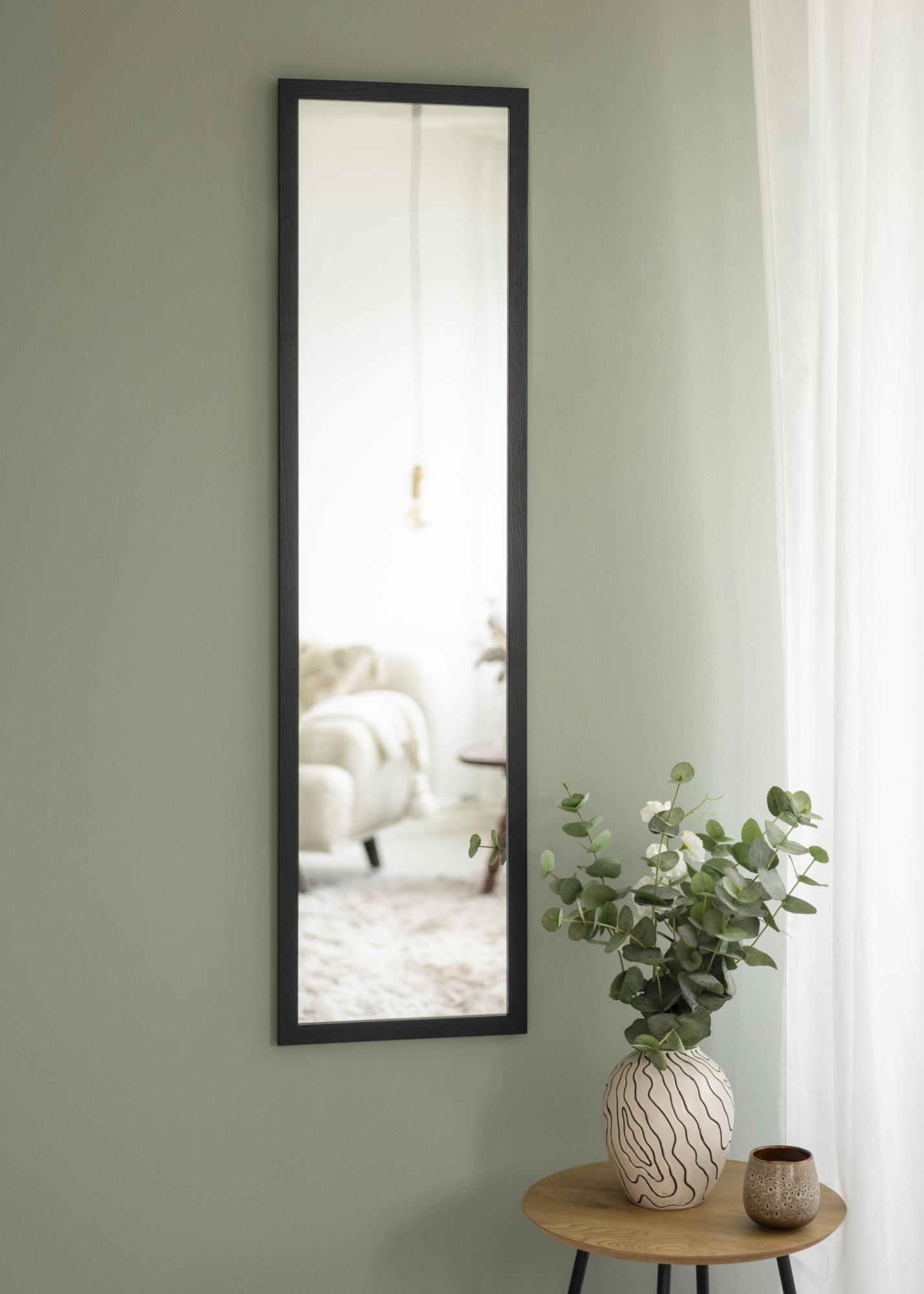 Αυτός ο καθρέφτης πόρτας διαθέτει λεπτή και μοντέρνα ξύλινη κορνίζα σε Μαύρο χρώμα, που προσφέρει μια ζεστή και φυσική αίσθηση. Η ματ επιφάνεια κάνει τον Καθρέφτης διακριτικό, ενώ ταυτόχρονα προσθέτει υφή και χαρακτήρα στον χώρο.