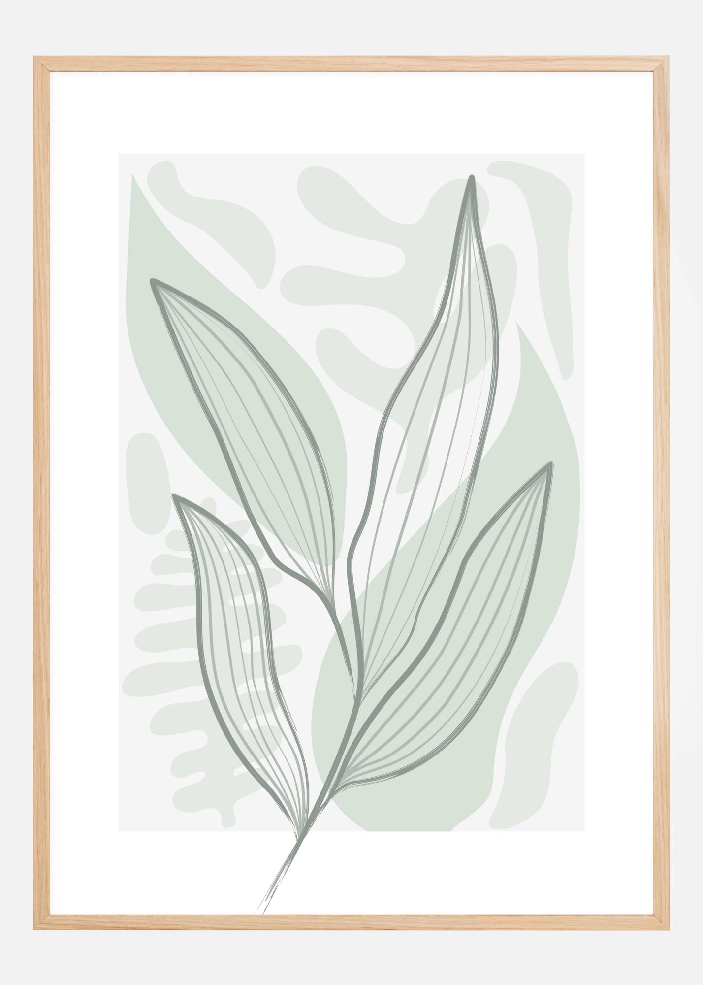 Μια αφηρημένη αφίσα με φύλλα σε απλό πράσινο φόντο με διάφορα σχήματα και μοτίβα φύλλων. Με απαλούς πράσινους και γκρι χρώματα, ο απλός σχεδιασμός των φύλλων, που περιγράφεται από μια έντονη γκρι γραμμή, προσφέρει μια έντονη αλλά απαλή αίσθηση άνοιξης που μπορεί να κρεμαστεί σε οποιοδήποτε δωμάτιο του σπιτιού.