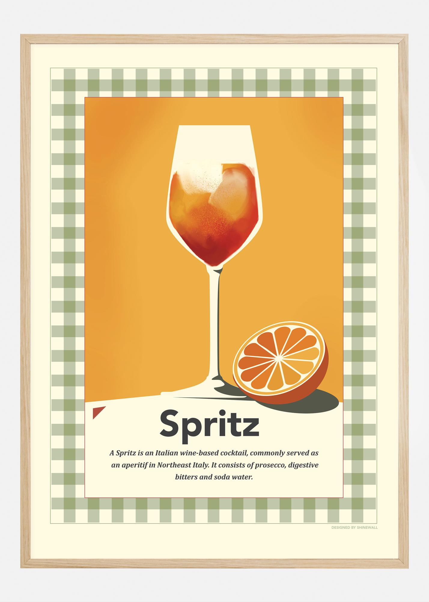 Για όλους όσους επιθυμούν εκείνο το αίσθημα των διακοπών, παρουσιάζουμε μια αφίσα που σας μεταφέρει απευθείας στις ηλιόλουστες βεράντες της Βόρειας Ιταλίας. Η ρετρό αφίσα Spritz μας αποτίει φόρο τιμής στον κλασικό απεριτίφ με μια εικονογράφηση που εκπέμπει ζεστασιά και χαρά. Οι πορτοκαλί αποχρώσεις του ποτηριού σε συνδυασμό με ένα τολμηρό, πράσινο καρό φόντο δημιουργούν μια εντύπωση που είναι ταυτόχρονα vintage και διαχρονική.