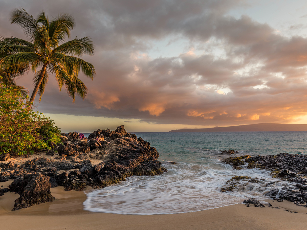Μια παραλία στο ηλιοβασίλεμα, ένα όμορφο κλισέ που είναι απαραίτητο για τον λάτρη του tiki ή το τροπικό θέμα. Αφίσα με την κλασική παλάμη που κλίνει πάνω από την άκρη της παραλίας στις τελευταίες χρυσές ηλιαχτίδες της ημέρας. Η φωτογραφία δείχνει όμορφη σε μια κορνίζα με φθαρμένη εμφάνιση ή σε ένα έντονο χρώμα για να ταιριάζει με τη διακόσμηση tiki.