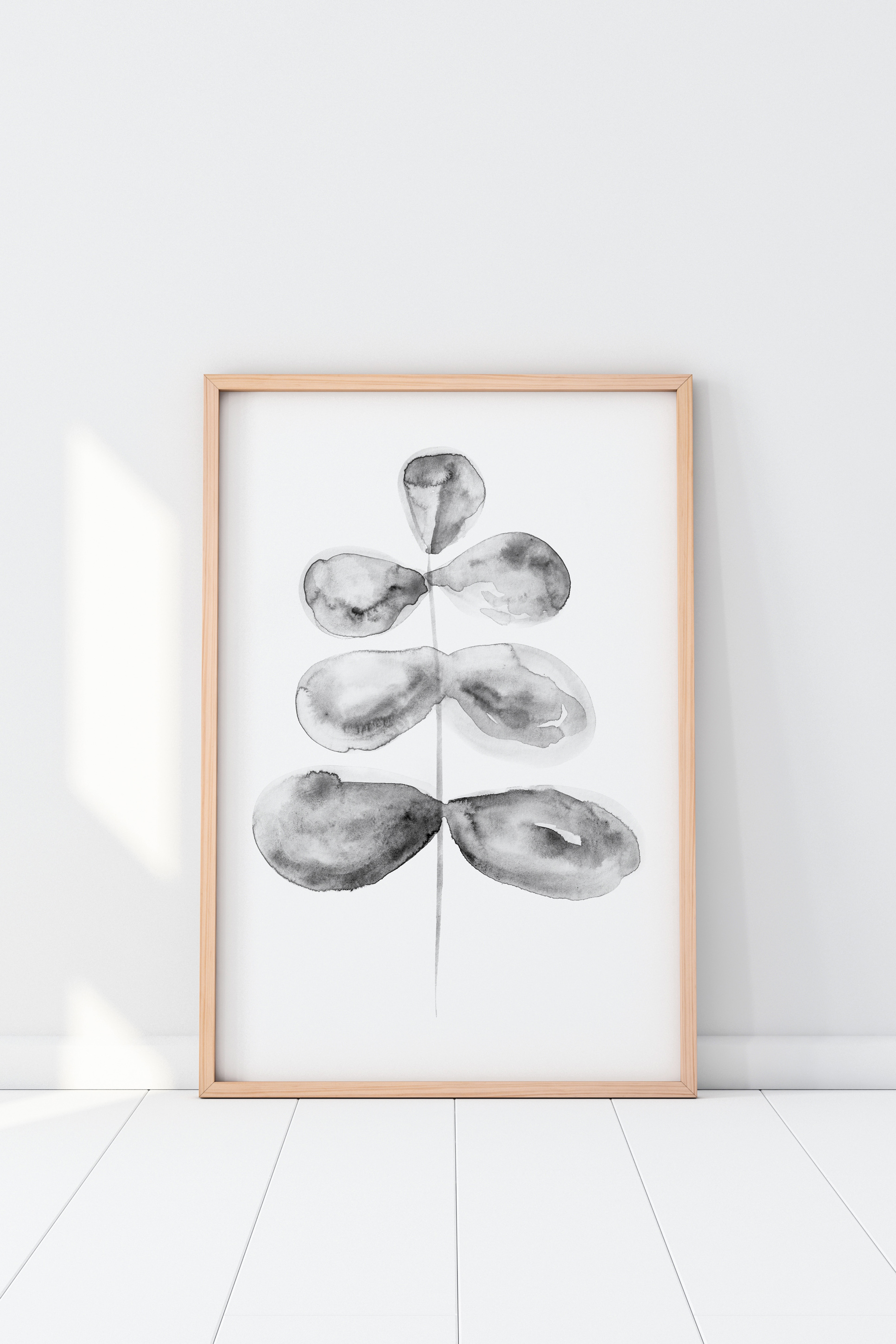 Μια κομψή βοτανική ακουαρέλα σε απαλή κλίμακα του γκρι δημιουργημένη από την καλλιτέχνη EMELIEmaria. Μια απλή και μινιμαλιστική αφίσα που ταιριάζει πολύ καλά με το δίδυμο πίνακά της Summer Calm.