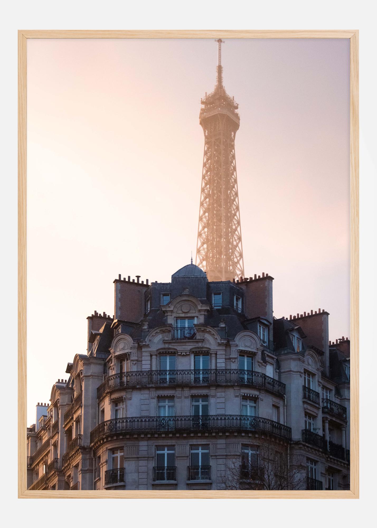 Αυτή η αφίσα αποτυπώνει την ουσία του Παρισιού με την ρομαντική και μαγευτική απεικόνιση του Πύργου του Άιφελ που κοιτά δειλά πίσω από κλασικά παρισινά κτίρια σε στυλ Haussmann. Ο ζεστός τόνος από το ηλιοβασίλεμα παρέχει ένα απαλό υπόβαθρο, όπου τα παστέλ χρώματα του ουρανού δημιουργούν μια αίσθηση ονειρικής ηρεμίας. Τα φυσικά χρώματα σε αυτό το εκτύπωμα προσδίδουν μια αίσθηση κομψότητας και απλότητας, καθιστώντας το μια τέλεια προσθήκη σε οποιοδήποτε δωμάτιο που χρειάζεται μια διακριτική πινελιά παγκόσμιας κουλτούρας.