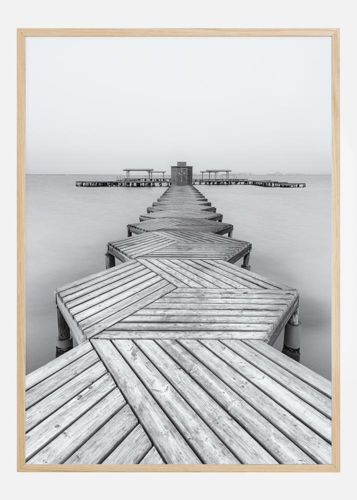 Μια διασκεδαστική αφίσα με μια εξάγωνη αποβάθρα που προχωράει προς τα μακριά πάνω από μια ήρεμη λίμνη. Η εικόνα είναι σε ήσυχους γκρι τόνους που την κάνουν να φαίνεται πιο κρύα παρά ζεστή. Η ξύλινη αποβάθρα σε οδηγεί προς το μακρινό σημείο όπου υπάρχει ένα λιμάνι που σε περιμένει. Συνδυάστε με ένα φωτεινό χρώμα για να δώσετε ζεστασιά.