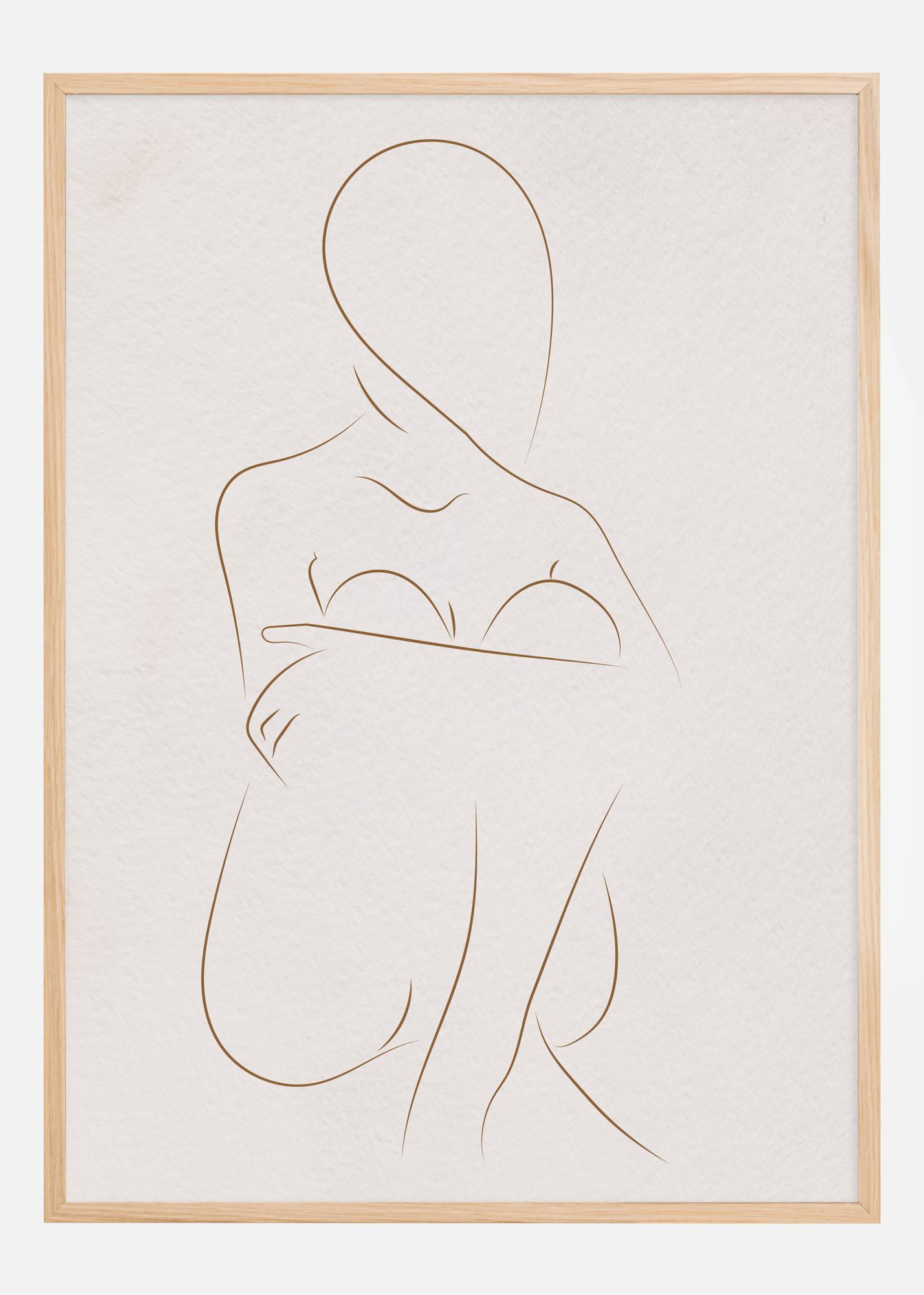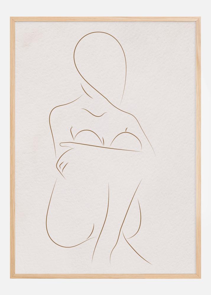 Αυτή η κομψή και μινιμαλιστική αφίσα απεικονίζει μια γυναικεία φιγούρα δημιουργημένη με λεπτές γραμμές που μαγνητίζει με την απλότητά της. Η γραμμική τέχνη χρησιμοποιεί μια διακριτική και απλουστευμένη αισθητική για να απεικονίσει τη γυναικεία μορφή, δίνοντας χώρο για την προσωπική ερμηνεία και φαντασία του θεατή. Οι απαλές περιγράμματα και η απλοποιημένη έκφραση προσφέρουν μια σύγχρονη και κομψή εντύπωση που ταιριάζει καλά σε μια μινιμαλιστική ή σκανδιναβική κατεύθυνση σχεδιασμού.