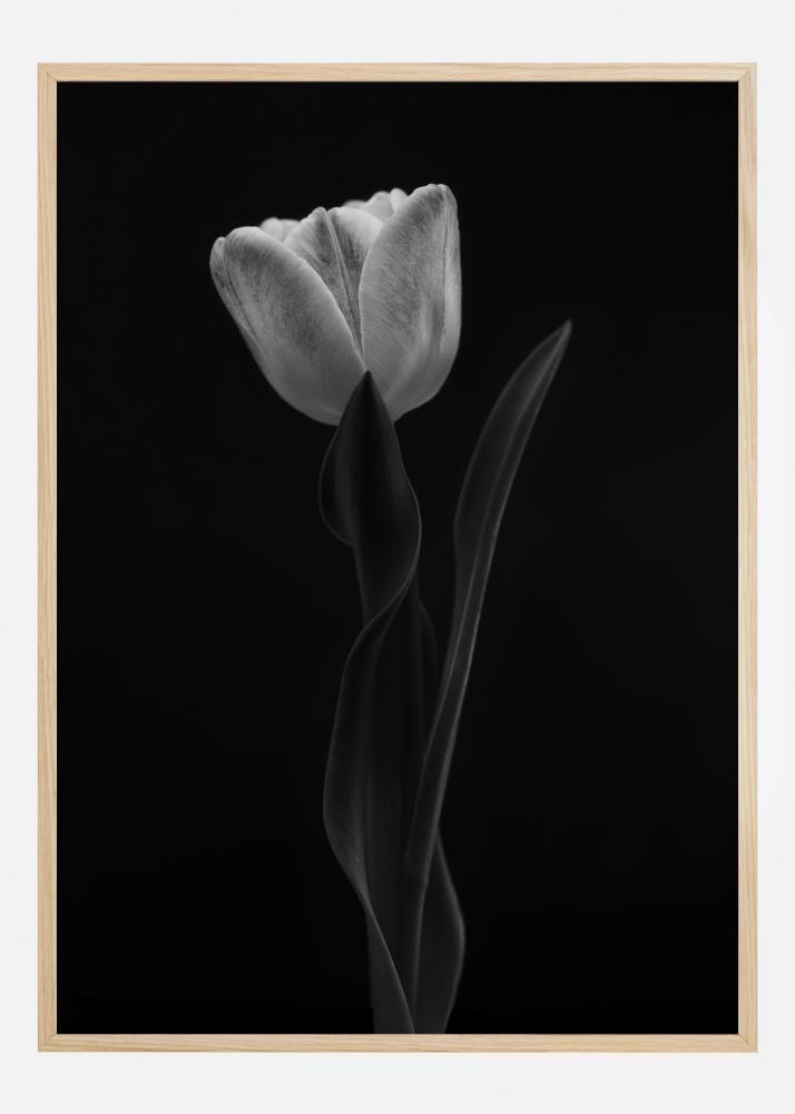 Μια απλή αφίσα φύσης με μία μόνο λευκή τουλίπα σε μαύρο φόντο. Δώστε στο σπίτι σας μια αίσθηση κομψότητας όταν κρεμάσετε αυτήν την εκτύπωση σε έναν απλό βαμμένο τοίχο για να ξεχωρίσει το λουλούδι.