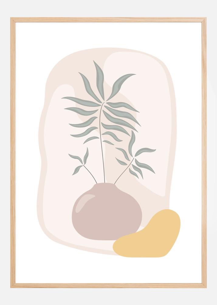 Μια στιλιζαρισμένη αφίσα με ένα βάζο με ένα πράσινο φυτό που βγαίνει από αυτό. Άλλες παράξενες μορφές και χρώματα γεμίζουν το φόντο και κάνουν αυτό το έργο ενδιαφέρον αλλά κάπως αφηρημένο. Συνδυάστε με μια ζωγραφιά σε παρόμοιο στυλ για να δημιουργήσετε μια μικρή γκαλερί στο σπίτι.