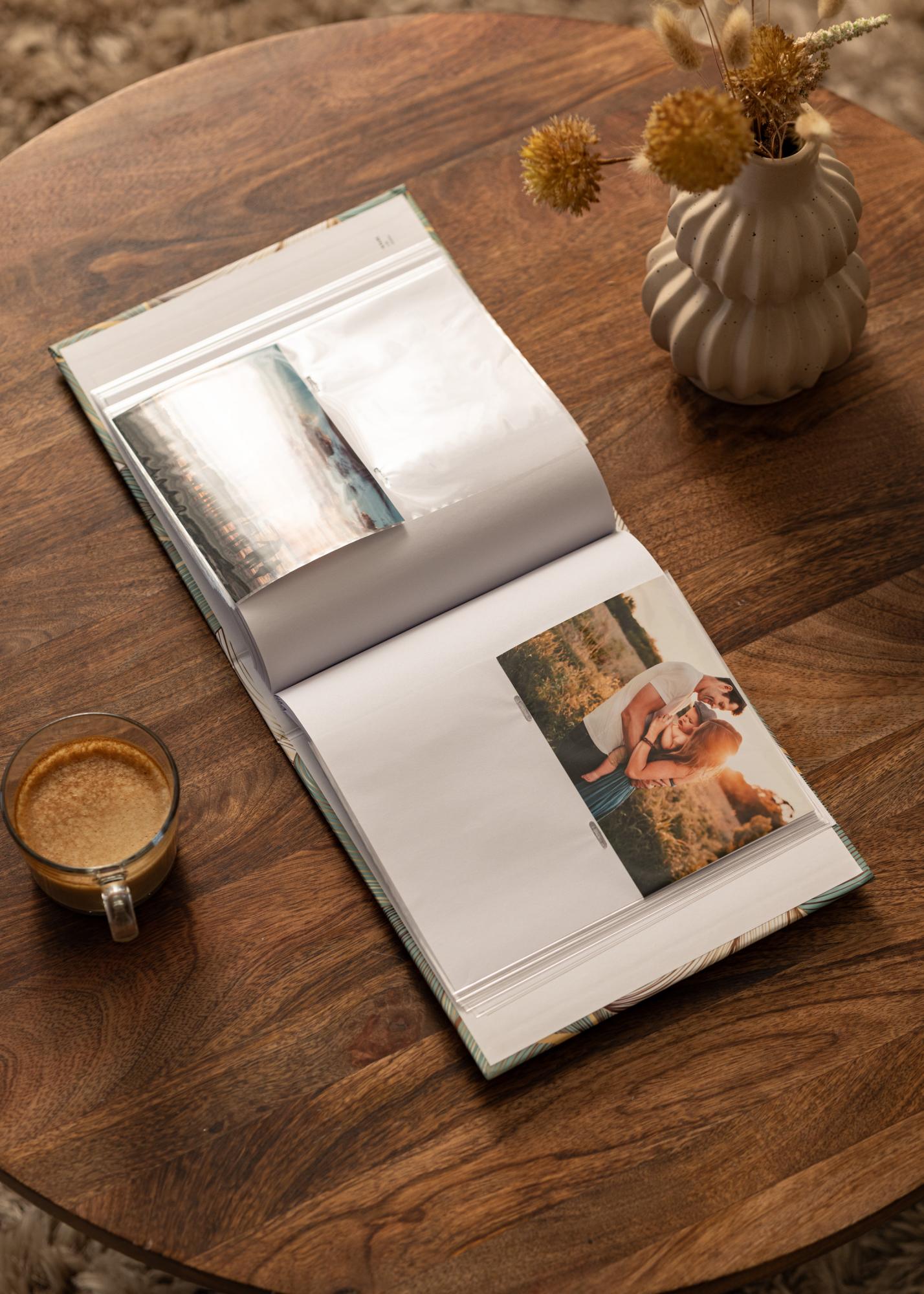 Τα εξώφυλλα του άλμπουμ είναι σε μια όμορφη τιρκουάζ απόχρωση που προσδίδει μια μοντέρνα και κομψή αίσθηση. Οι σελίδες είναι λευκές, δημιουργώντας μια ωραία αντίθεση και επιτρέποντας στις φωτογραφίες σας να βρίσκονται στο επίκεντρο. Η προσανατολισμός των φωτογραφιών είναι οριζόντια, προσφέροντας μια αρμονική παρουσίαση των φωτογραφιών σας.