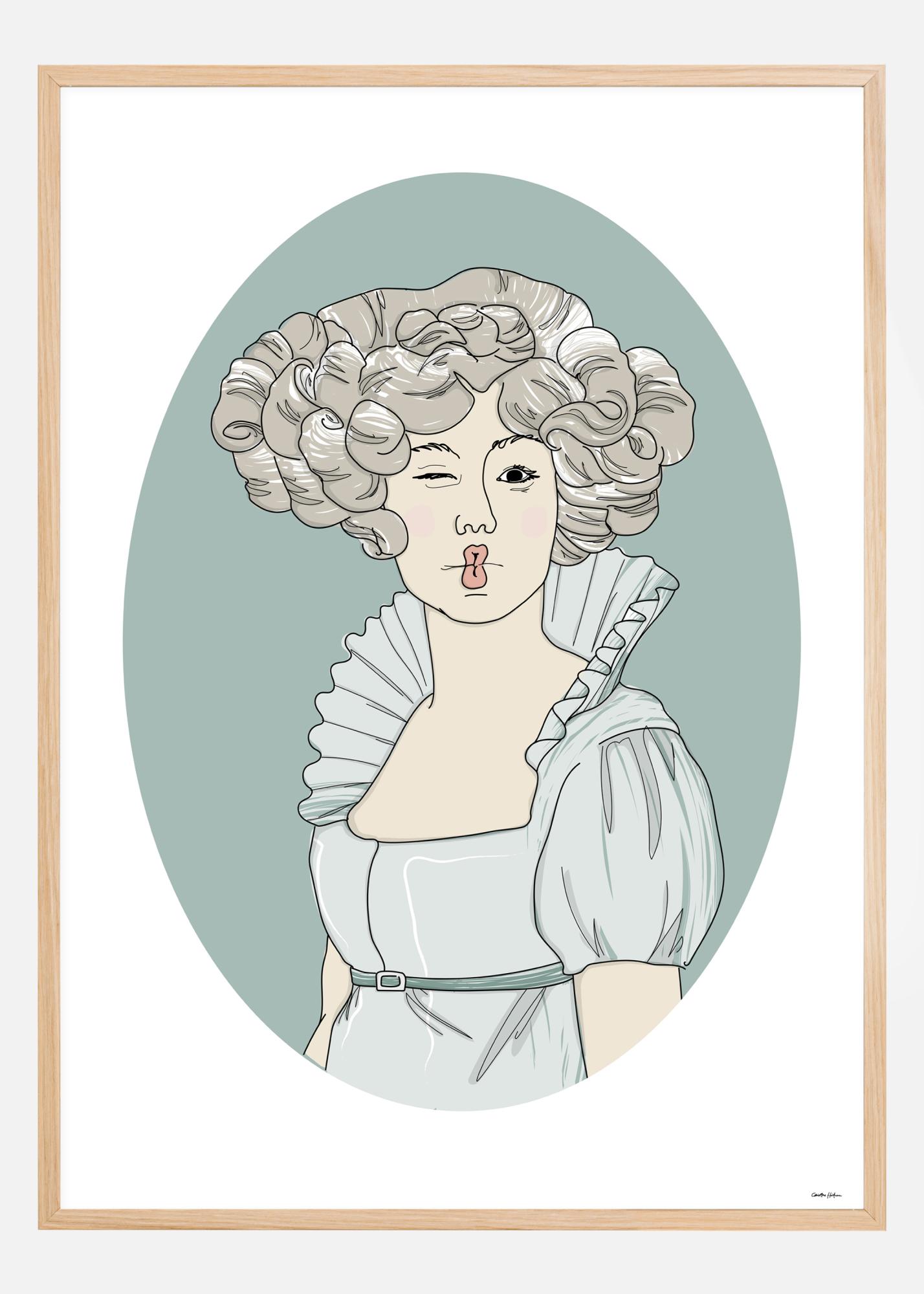 Ένα τολμηρό πόστερ με μια βικτοριανή Βιολέτα που αδιάκριτα κλείνει το μάτι από την εικόνα με τα χείλη της σουφρωμένα σε ένα φιλί. Οι γκρίζες μπούκλες της ταιριάζουν με το απαλό μπλε-γκρι φόρεμα με ψηλό γιακά. Η εικόνα είναι επίσης σε μια μπλε οβάλ για να μιμείται τις παλιές μικρές μενταγιόν φωτογραφίες και να δημιουργεί ένα μοναδικό, περίεργο έργο τέχνης.