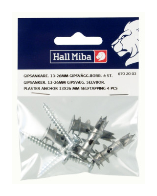 Αυτοδιάτρητα αγκύρια γυψοσανίδας σε συσκευασία 4 τεμαχίων. Απλά βιδώστε το βύσμα και στη συνέχεια τη βίδα, και είναι έτοιμο. Δεν χρειάζεται να τρυπήσετε. Ιδανικά για όλες μας τις κορνίζες που θα τοποθετηθούν σε τοίχο γυψοσανίδας.