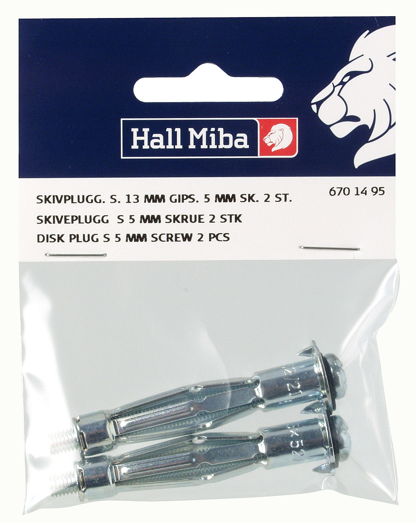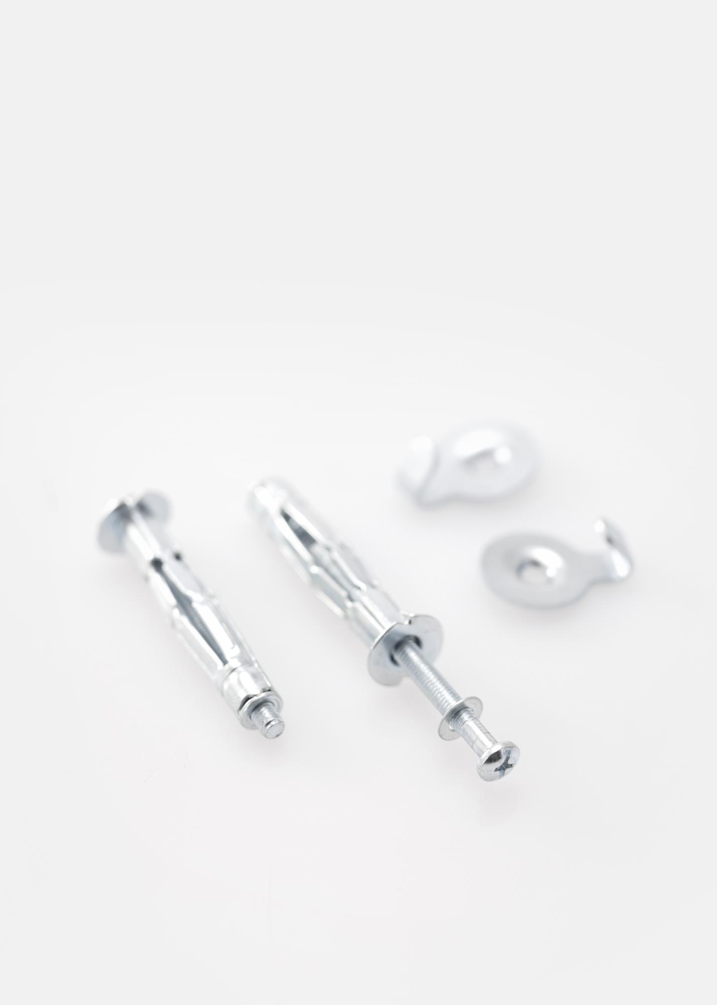 2 κομμάτια πριτσίνια και βίδες M5 για γυψοσανίδα 13 χιλιοστών. Η εγκοπή στο πριτσίνι εφαρμόζει για διάσταση βίδας 8 χιλιοστών.