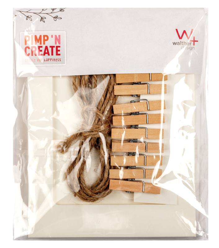Γιρλάντα φωτογραφιών με 10 χάρτινες κορνίζες σε μπεζ απόχρωση, για φωτογραφίες 10x15 εκ. Η γιρλάντα έχει μήκος 180 εκ και 10 ξύλινα μανταλάκια για να στερεωθούν πάνω στο σχοινί λίνου. Οι χάρτινες κορνίζες είναι ακατέργαστες, που σου επιτρέπει να τις ζωγραφίσεις ή να τις διακοσμήσεις όπως επιθυμείς.