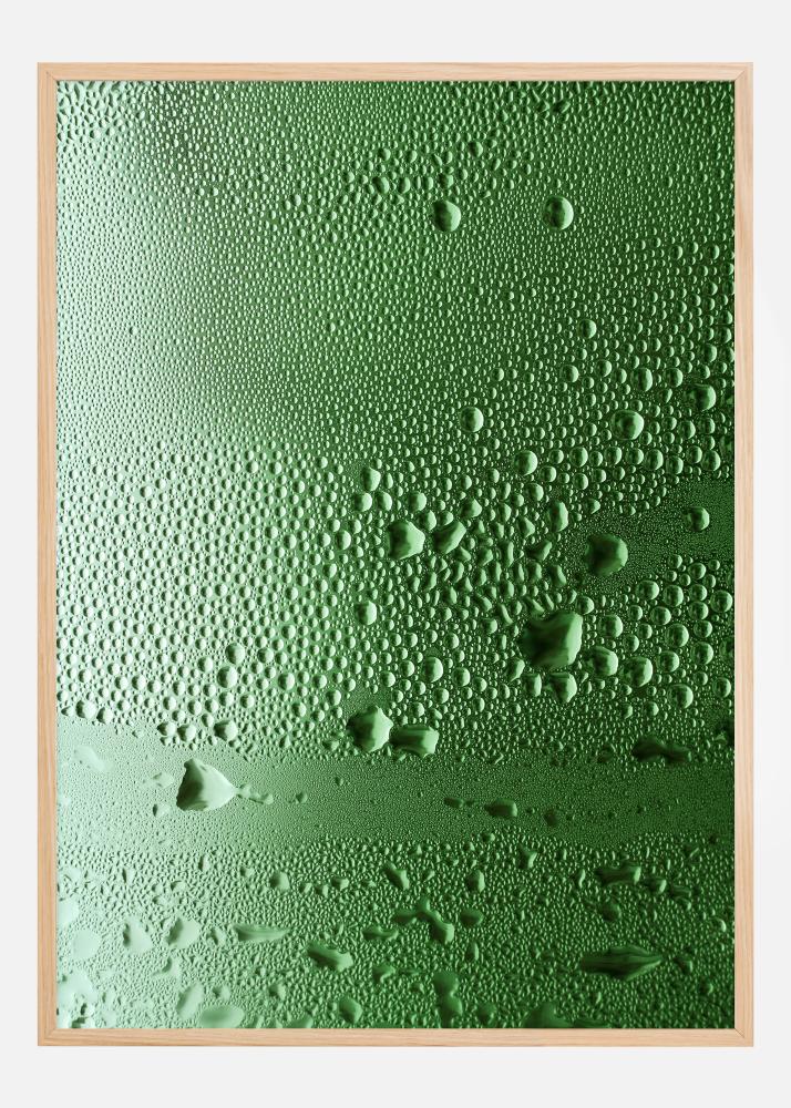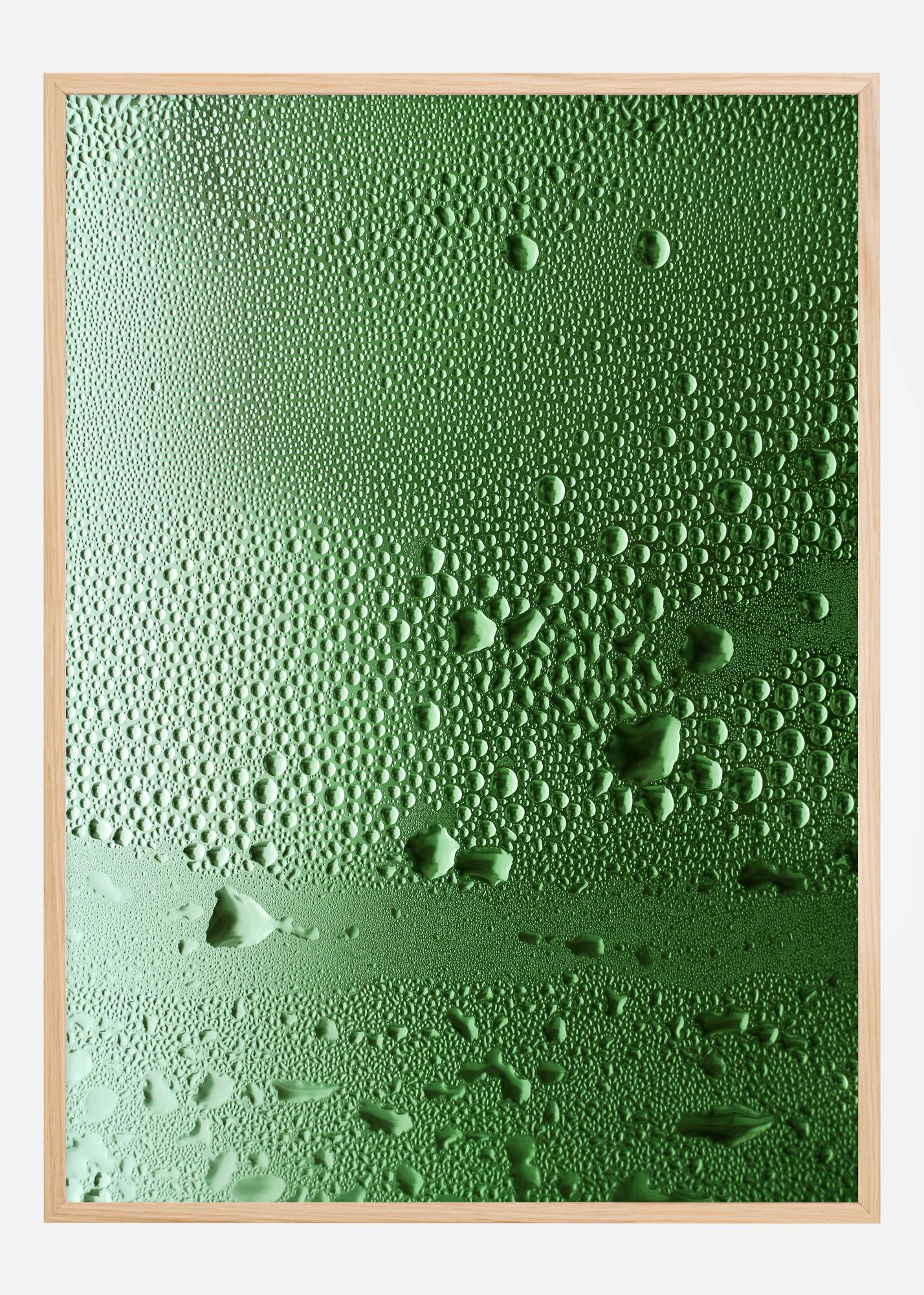 Ξανανακαλύψτε την απλή ομορφιά των στοιχείων της φύσης με την αφίσα μας που τονίζει τη φρεσκάδα των σταγόνων νερού σε μια γυαλιστερή επιφάνεια. Αυτό το έργο τέχνης αιχμαλωτίζει τη στιγμή που οι σταγόνες αναπαύονται ήρεμα πάνω σε ένα ζωντανό πράσινο φόντο, καθεμία αντανακλώντας το φως και προσθέτοντας βάθος και υφή στη απλή σύνθεση. Αυτή η εκτύπωση είναι μια λεπτή υπενθύμιση των καθαρών αναγκών της ζωής και της ήρεμης παρουσίας της φύσης.