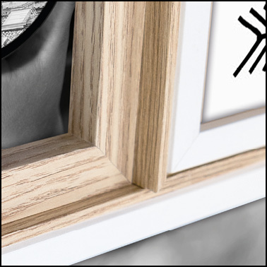 Ξεκινήστε τον επιλογέα κορνίζας »Κομψή κορνίζα κολάζ από ξύλο με χώρο για 7 εικόνες διαφορετικών μεγεθών.