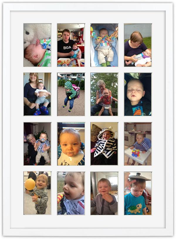 Λευκό Ξύλο με πασπαρτού για 16 εικόνες ταιριάζει τέλεια για φωτογραφίες των παιδιών, του κατοικίδιου ζώου ή ίσως από την τελευταία ταξιδιωτική εκδρομή. Η λευκή, κομψή κορνίζα σε συνδυασμό με το λευκό πασπαρτού αναδεικνύει τα χρώματα στα θέματα και ταιριάζει επίσης καλά με ασπρόμαυρες εικόνες.