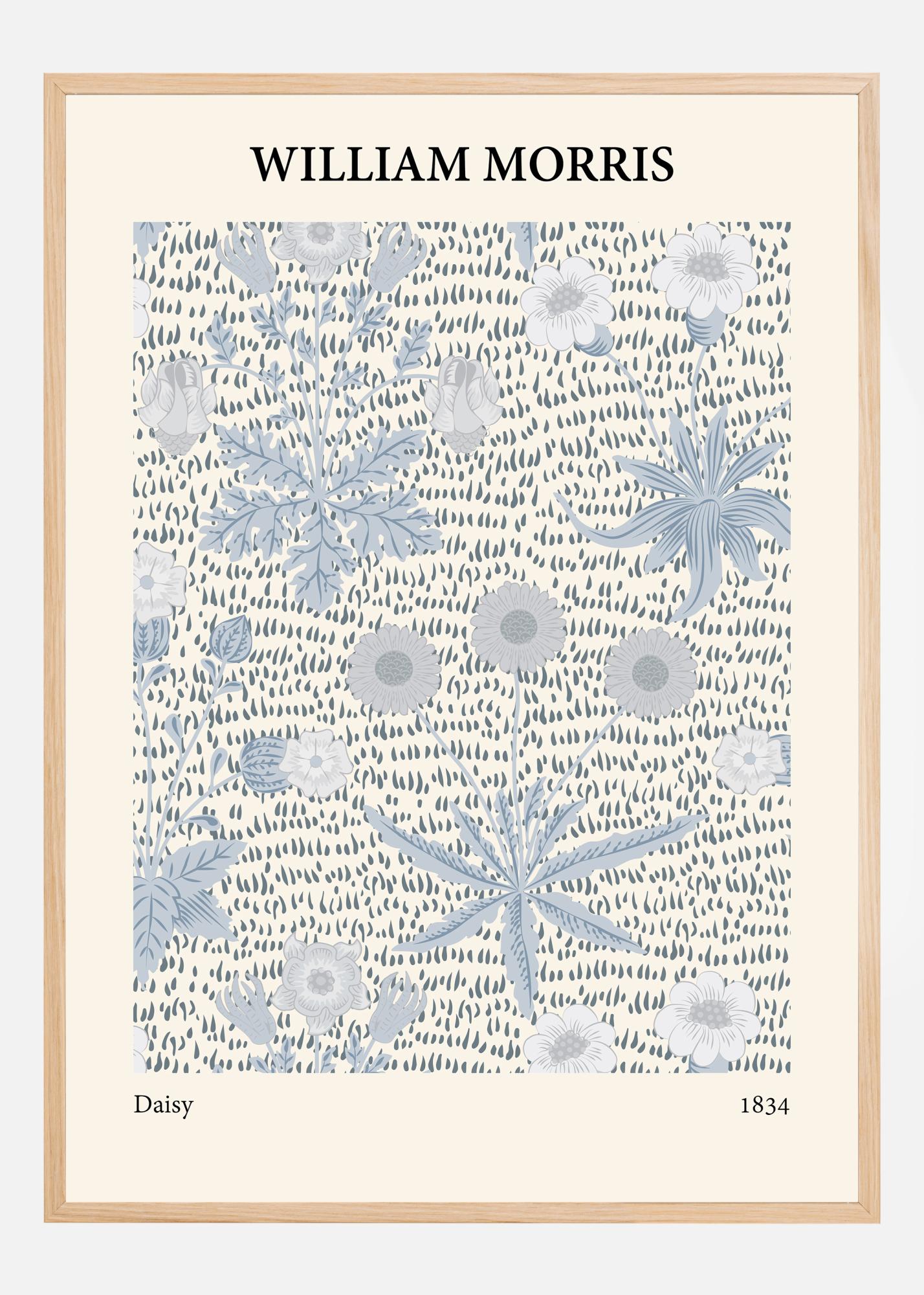 Αυτή η γοητευτική αφίσα παρουσιάζει το κλασικό σχέδιο "Daisy" του William Morris από το 1834. Είναι ένα λεπτό και χαριτωμένο σχέδιο που χαρακτηρίζεται από τις μπλε αποχρώσεις του και τη χαριτωμένη αναπαράσταση του λουλουδιού από το οποίο πήρε το όνομά του. Οι διακριτικές πινελιές του πράσινου ανάμεσα στα φύλλα ζωντανεύουν το φωτεινό και ευάερο φόντο, καθιστώντας το ένα διαχρονικό σχέδιο που εξακολουθεί να είναι αγαπητό σήμερα.