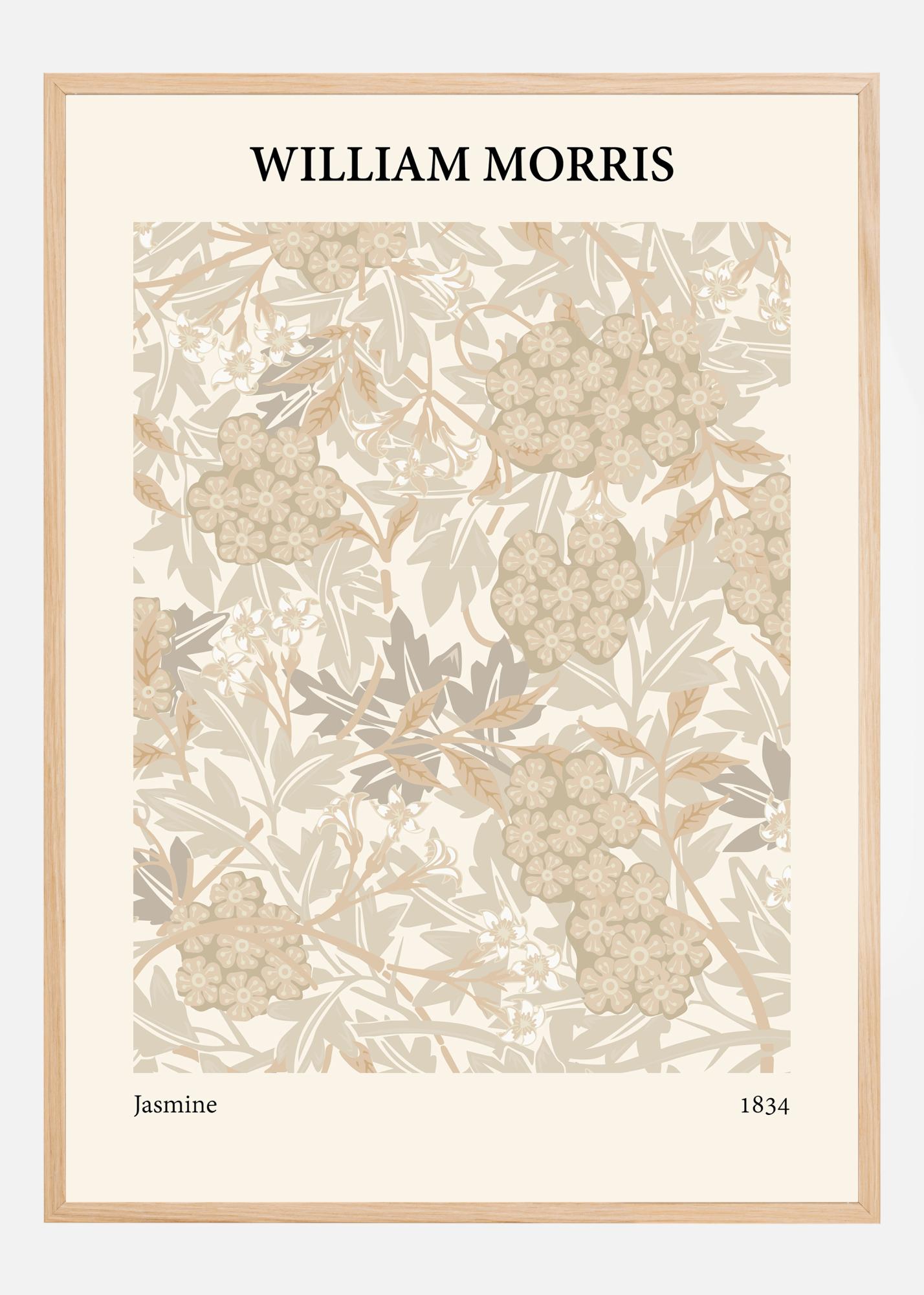 Αυτή η όμορφη αφίσα από τον William Morris, με τίτλο "Jasmine", είναι ένας φόρος τιμής στον κλασικό αγγλικό κήπο, γεμάτο με αρωματικά άνθη και πλούσια βλάστηση. Το σχέδιο είναι πυκνά υφασμένο με ανθισμένο γιασεμί και άλλα λουλούδια, περιτριγυρισμένα από φύλλα σε διάφορα σχήματα και μεγέθη. Η παλέτα χρωμάτων είναι απαλή και γήινη, με έναν συνδυασμό από ουδέτερες μπεζ και καφέ αποχρώσεις σε ένα θερμό κρεμ φόντο, δημιουργώντας μια αίσθηση ηρεμίας και αρμονίας στο σπίτι.