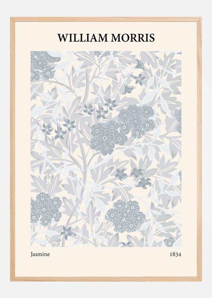 Αυτή η κομψή και ηρεμιστική αφίσα του William Morris, με τίτλο "Jasmine", αποπνέει μια αίσθηση ηρεμίας και καθαρότητας. Το μοτίβο είναι μια πλούσια απόδοση ενός ανθισμένου κήπου, με άνθη γιασεμιού και φύλλα σε αποχρώσεις του απαλού μπλε και του γκρι, όμορφα τοποθετημένα σε ένα καθαρό και ηρεμιστικό υπόβαθρο κρεμ χρώματος. Αυτή η εκτύπωση είναι αφιερωμένη στην αγάπη του Morris για τη φύση και την ικανότητά του να συλλαμβάνει την ομορφιά της στα σχέδιά του.