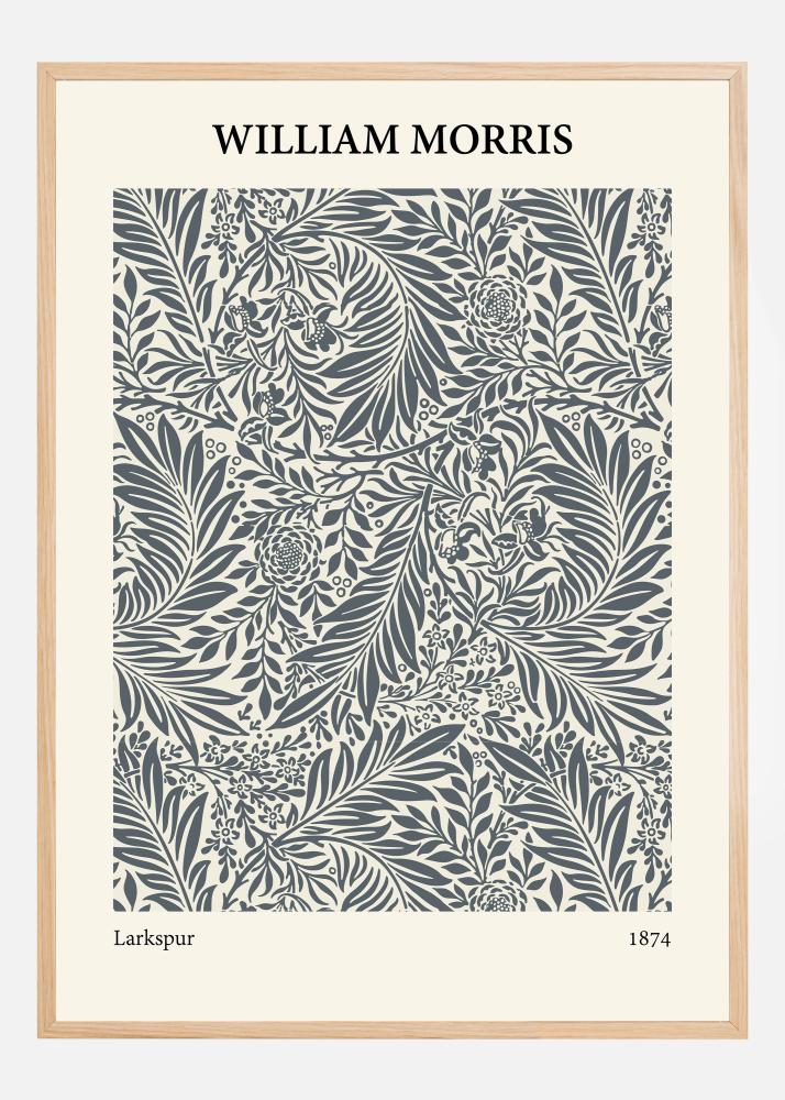Αυτή η αφίσα του William Morris από το 1874, με τίτλο "Larkspur", αναδεικνύει την εξαιρετική λεπτομέρεια και οργανική ομορφιά που είναι χαρακτηριστική για το σχέδιο του Morris. Το μοτίβο, που ανθίζει με πολύπλοκα λουλούδια και φυλλώματα, αποπνέει μια διαχρονική κομψότητα που συμπληρώνει τόσο παραδοσιακούς όσο και σύγχρονους χώρους. Το σχέδιο αποτελεί κλασική αναπαράσταση των αξιών του κινήματος Arts and Crafts, όπου η χειροποίητη ποιότητα και τα θέματα που σχετίζονται με τη φύση βρίσκονται στο επίκεντρο.
