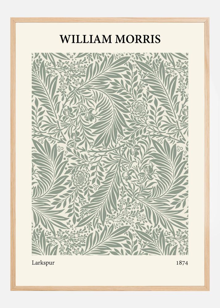 Αυτή η αφίσα του William Morris, με τίτλο "Larkspur" από το έτος 1874, παρουσιάζει μια μαγεμένη και περίτεχνη σχεδίαση ενός στροβιλισμένου θαλάσσιου κόσμου από φυτά. Κάθε στοιχείο αυτού του λεπτομερούς μοτίβου είναι εκτενώς συνυφασμένο, δημιουργώντας μια ζωντανή και γοητευτική επίδραση. Αυτή η εκτύπωση θα ήταν μια εκλεπτυσμένη λεπτομέρεια σε οποιοδήποτε σπίτι που εκτιμά την τέχνη και την αισθητική κοντά στη φύση της κίνησης Arts and Crafts.