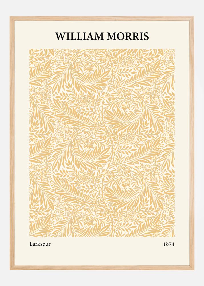 Με τη ζεστή, μονοχρωματική χρυσή του απόχρωση, αυτή η αφίσα αναδημιουργεί τον πολυτελή σχεδιασμό του "Larkspur" του William Morris από το 1874. Η πλούσια σύνθεση από φύλλα και λουλούδια χορεύει στο χαρτί, παρουσιάζοντας την δεξιότητα και ακρίβεια για την οποία ο Morris είναι γνωστός στο κίνημα Arts and Crafts. Αυτή η αφίσα παρέχει μια αίσθηση ζεστασιάς και ηλιοφάνειας σε οποιοδήποτε δωμάτιο και είναι ένας υπέροχος φόρος τιμής στη βικτοριανή εποχή της χειροτεχνίας.