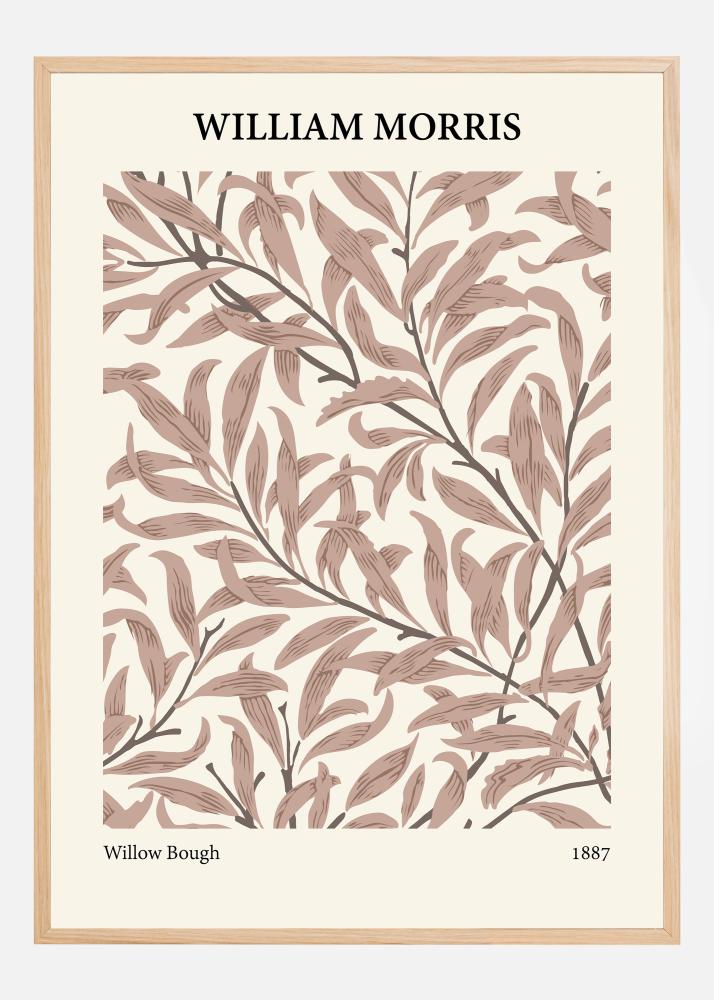 Αυτός ο σχεδιασμός αφίσας αποτίει φόρο τιμής στο "Willow Bough" του William Morris από το 1887 και είναι μια υπέροχη αναπαράσταση της δέσμευσης του Morris για μοτίβα κοντά στη φύση. Τα κομψά σχηματισμένα φύλλα ιτιάς απλώνονται πάνω από μια κρεμώδη φόντο, δημιουργώντας μια αρμονική αντίθεση που είναι τόσο χαλαρωτική όσο και αισθητικά ευχάριστη. Οι καφέ και μπεζ αποχρώσεις μεταφέρουν μια θερμή αίσθηση, χαρακτηριστική του έργου του Morris.