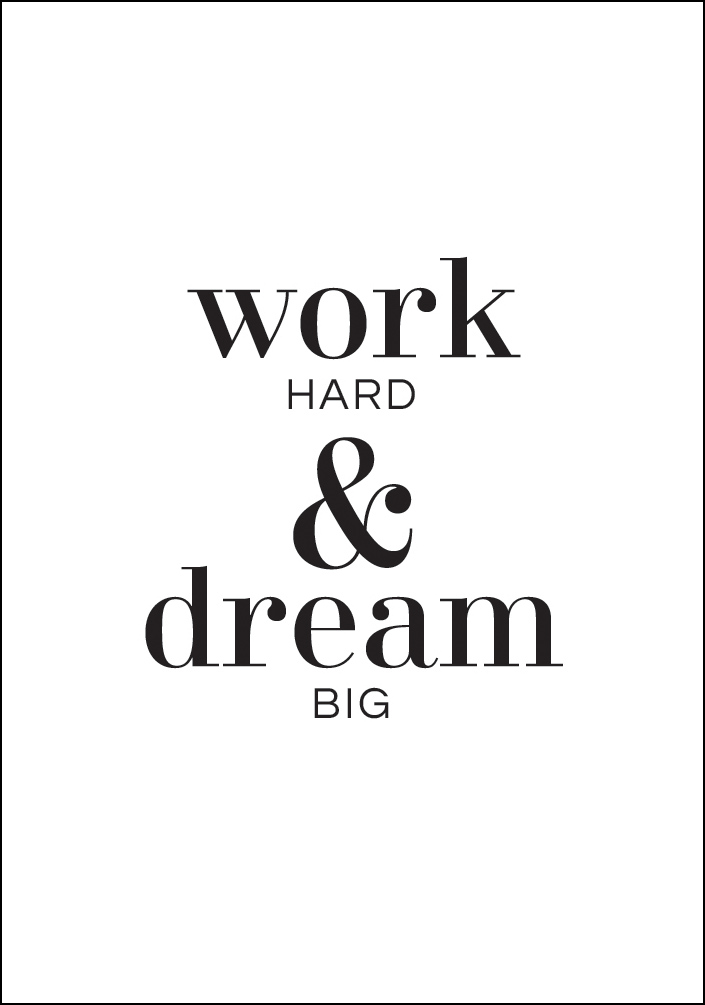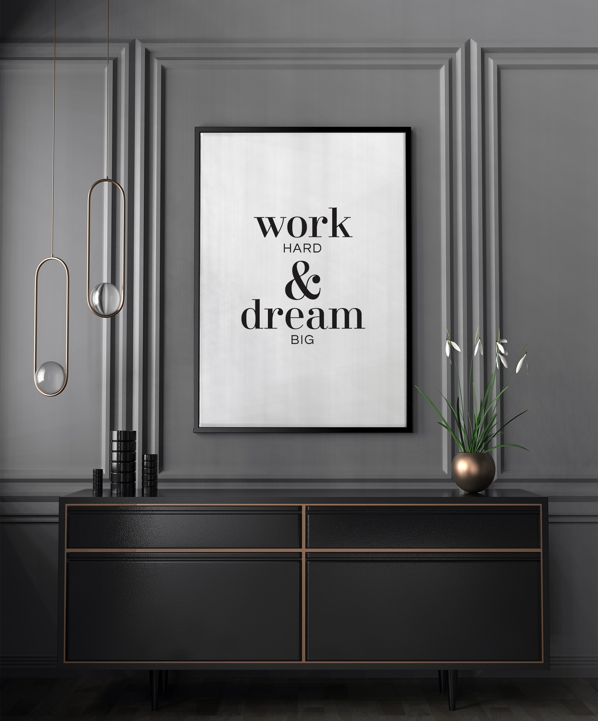 Μια εμπνευσμένη αφίσα με μια ισχυρή φράση για να ξεκινήσεις τη μέρα σου. Δούλεψε σκληρά και ονειρέψου μεγάλα είναι λόγια που πρέπει να χρησιμοποιήσεις για να πάρεις ώθηση κάθε πρωί. Κρέμασέ την στην κουζίνα σου ώστε να εμπνέεσαι με τον πρωινό καφέ σου.