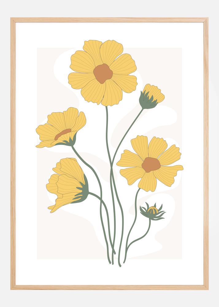 Μία φωτεινή αφίσα με κίτρινους κατιφέδες που δημιουργήθηκε με μια διασκεδαστική εκτυπωτική στυλ. Καθένα από τα λουλούδια λάμπει στο λευκό φόντο. Παρά το ότι είναι ένας απλός στιλιζαρισμένος σχεδιασμός, τα λουλούδια είναι χαρούμενα και ο τέλειος τρόπος να ξυπνήσει κανείς με ένα χαμόγελο στα χείλη.