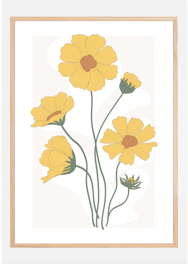 Μια φωτεινή αφίσα με κίτρινους κατιφέδες που έχει δημιουργηθεί σε ένα διασκεδαστικό στυλ εκτύπωσης. Το καθένα από τα λουλούδια λάμπει στο λευκό φόντο. Παρόλο που είναι μια απλή στυλιζαρισμένη σχεδίαση, τα λουλούδια είναι χαρούμενα και ο τέλειος τρόπος να ξυπνάτε με ένα χαμόγελο στα χείλη.