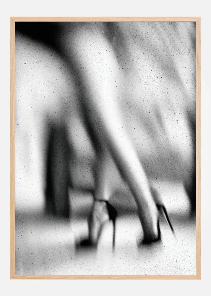 Η καλλιτεχνική αυτή αφίσα παίζει με την ασαφήνεια και την αντίθεση για να δημιουργήσει μια αίσθηση κίνησης και αφαίρεσης. Απεικονίζει ένα ζευγάρι πόδια με ψηλοτάκουνα παπούτσια σε μια ατμοσφαιρική και σχεδόν θολή κίνηση, παρέχοντας στο έργο μια αιθέρια και δυναμική αίσθηση. Η μονοχρωματική κλίμακα χρωμάτων της αφίσας προκαλεί μια αίσθηση διαχρονικότητας και σύγχρονου.